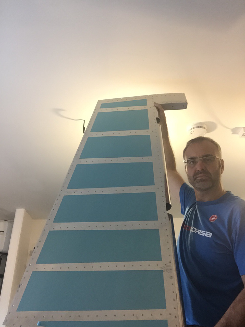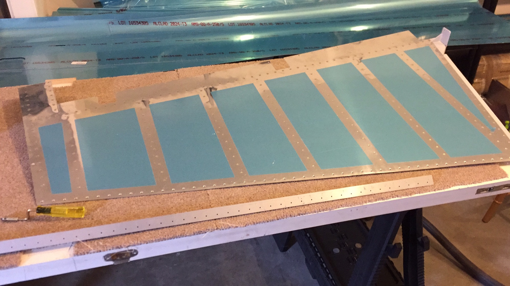 Next up was rolling the leading edges. I used a 1″ diameter broomstick and duct tape. I needed molegrips to get a decent radius but it worked out quite nicely. Edges blind riveted (overlapping edge slightly bent with a Cleveland Tools trailing edge roller) and job done.