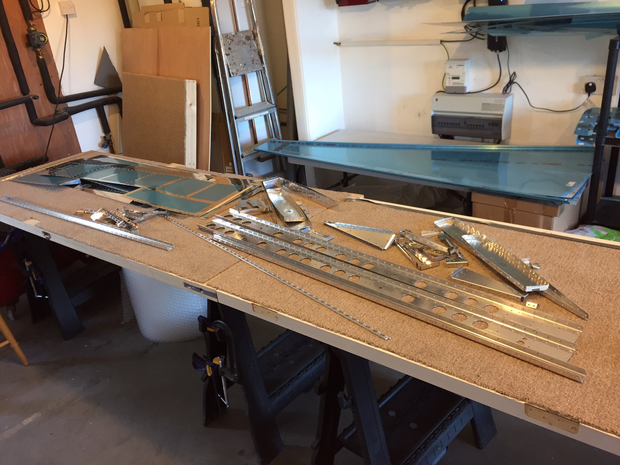 Next up was assembling the trim tab and final drilling the overlap tabs. The manual says to dimple first and the final drill with a #33 drill. Luckily I had a 6" #33 drill bit but I found this a bit strange. I'm sure the reason will become obvious. Next stage is cleaning , etching and priming all the inner workings. There are a lot of parts…