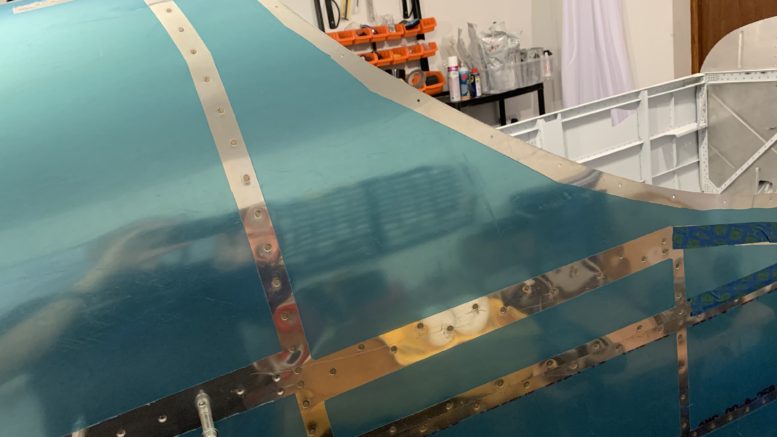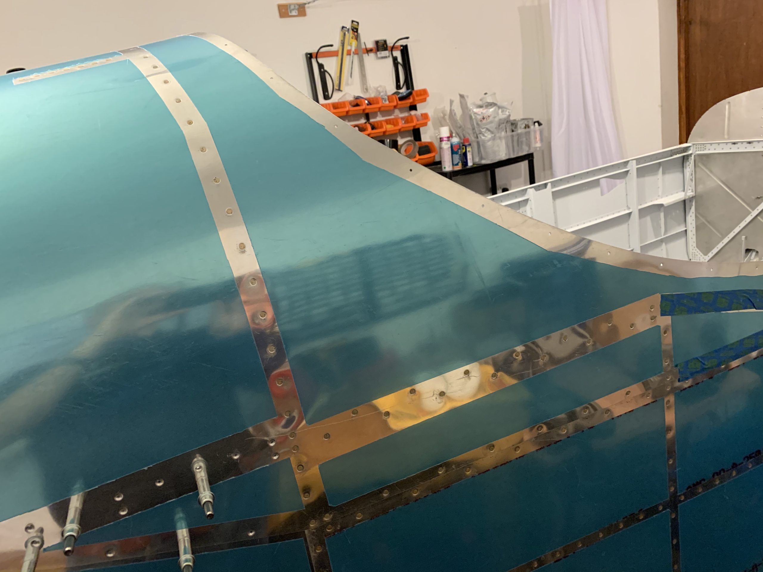 I had already prepped and fitted the harness lugs and we have now closed up the top half of the join. The fuselage is too high for some of the internal rivets so once I have two serviceable arms, I will construct a fuselage dolly so that we can reach inside.